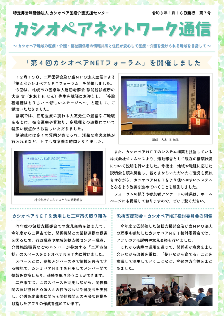 二戸医師会及び当NPO法人主催による令和7年度在宅医療人材育成研修事業「第4回カシオペアNETフ...